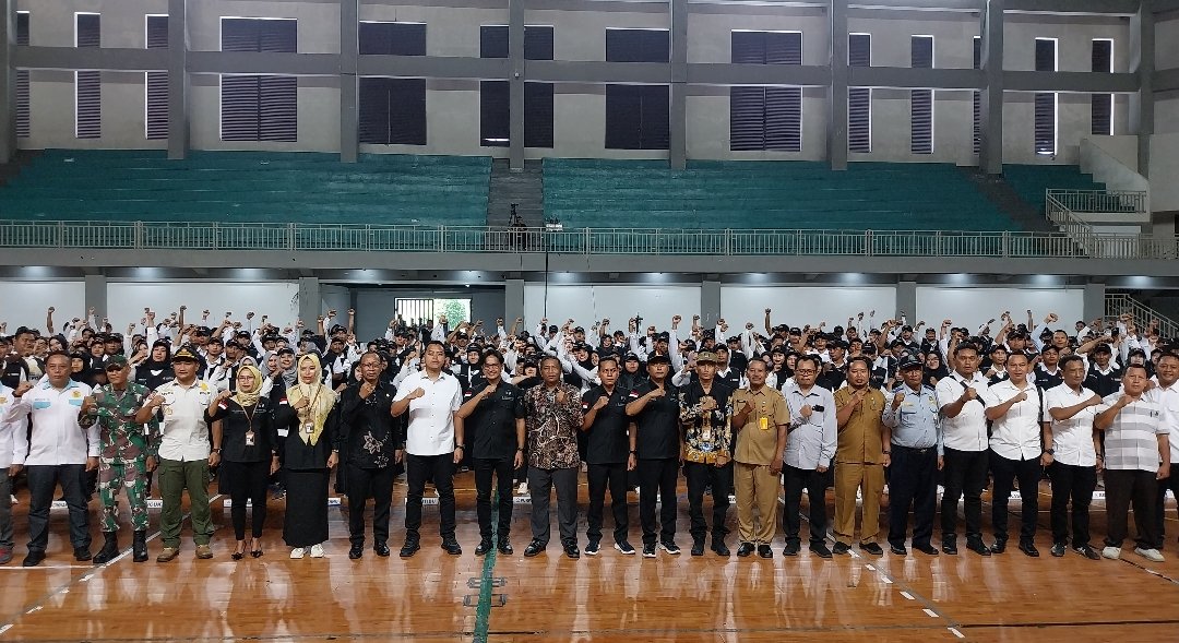 Foto: Apel Siaga Persiapan Pengawasan Masa Tenang dan Pemungutan serta Perhitungan Suara Pemilu 2024, Sabtu (10/2/2024) di GOR Utama Bojonegoro Desa Ngumpakdalem, Kecamatan Dander. (Sumber: BB/Redho)