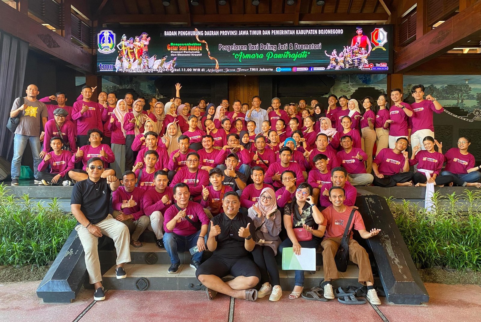 Ket foto: Foto bersama usai rapat, diskusi sekaligus gladi bersih gelar seni budaya di Anjungan Jawa Timur TMII Jakarta. (Sumber: barometerbali/Redho)