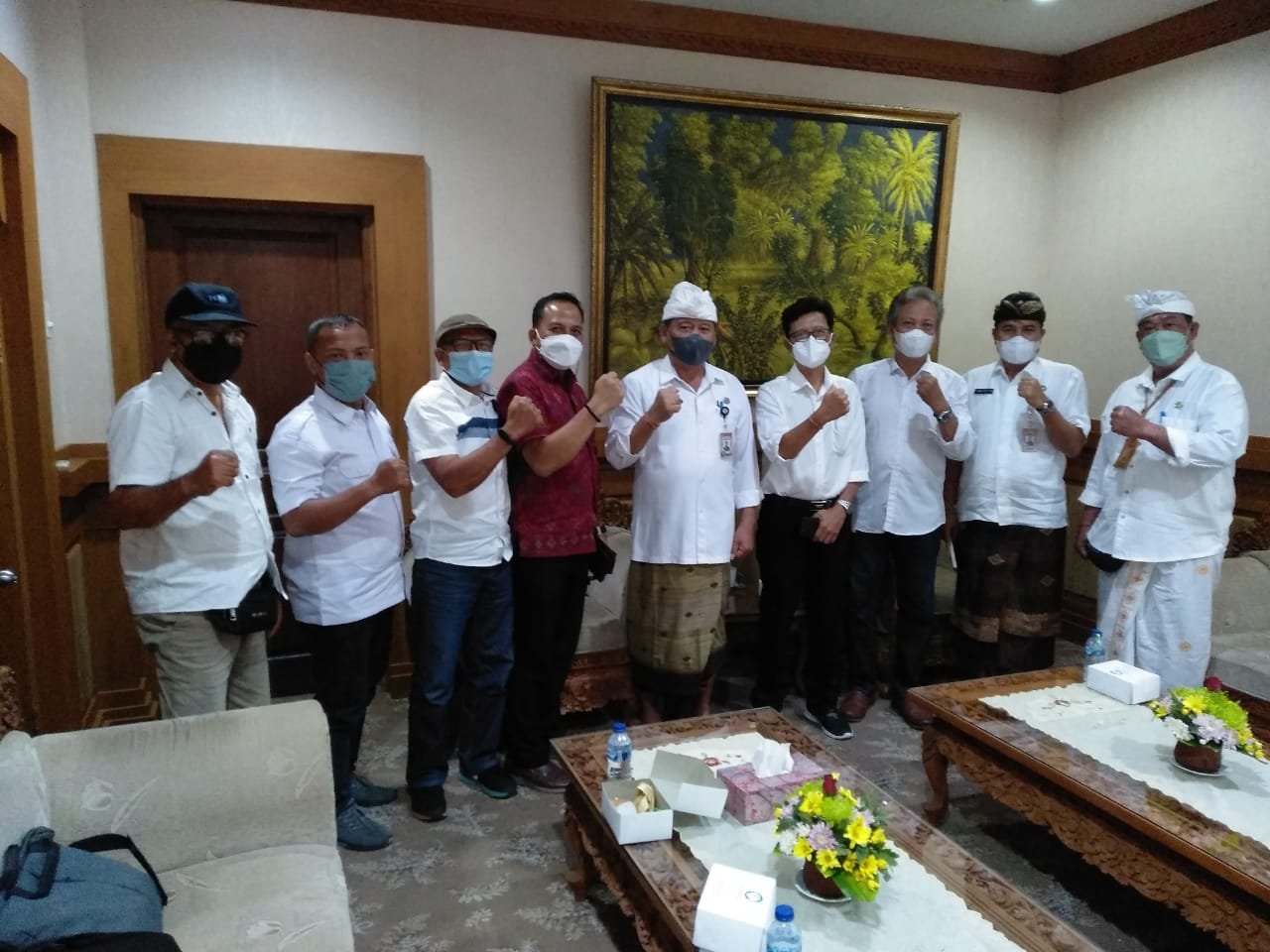 “Dari 10 cabang olahraga, kami dari SIWO-PWI Bali hanya akan mengikuti 4 cabor yang terdiri dari 30 orang Pak Sekda,” ujar Dwikora Putra yang didampingi Sekretaris PWI Dira Arsana, Bendahara PWI Agus Eryana, Ketua SIWO Djoko Purnomo, Wakil Ketua SIWO Ngurah Mertayasa, dan Seksi Media Siber PWI Totok Waluyo.