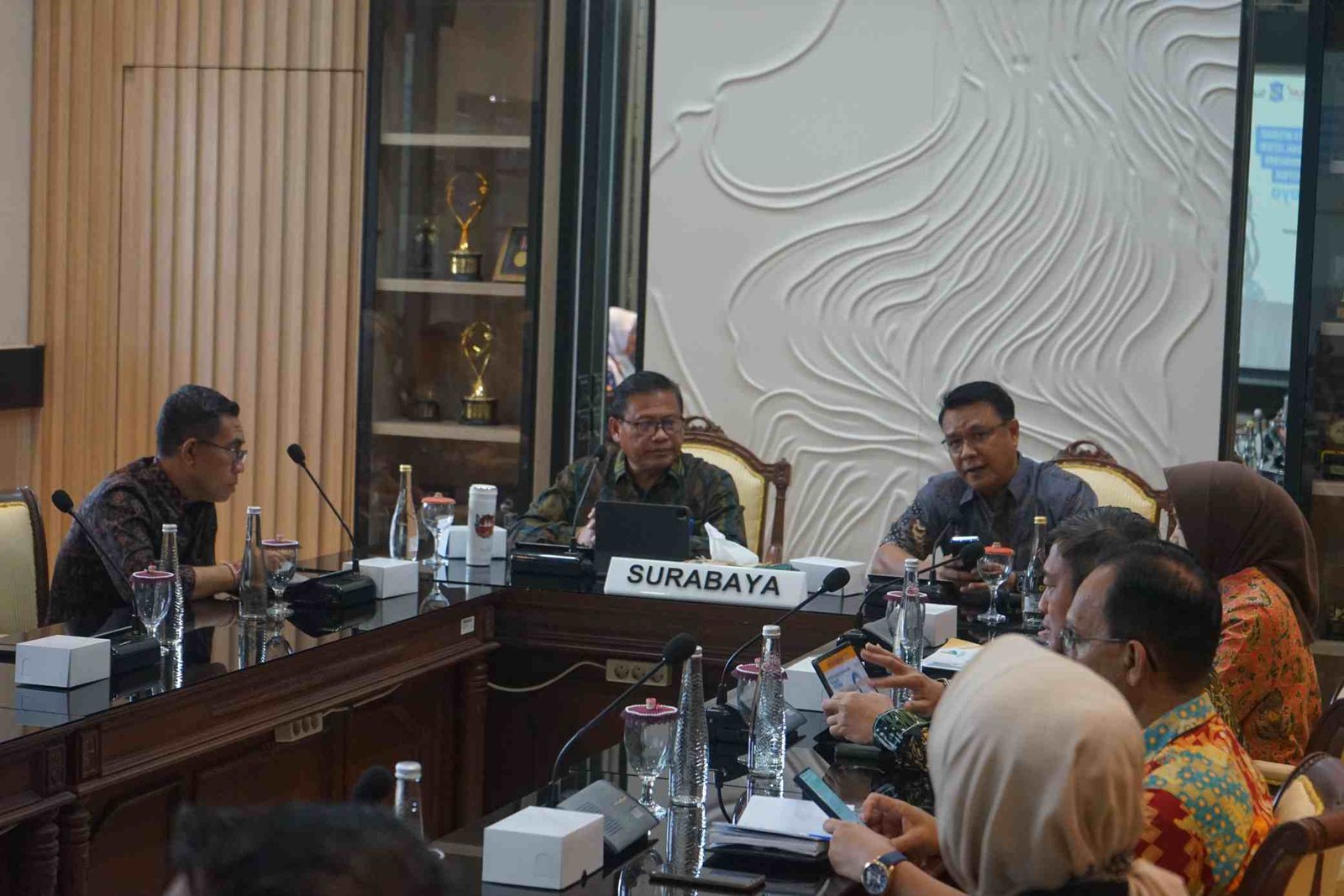 Barometer Bali | Surabaya – Pemerintah Kota Denpasar melaksanakan Kunjungan Kerja untuk study tiru inovasi Satu Data yang diterima Penjabat (Pj) Sekretaris Daerah (Sekda) Kota Surabaya, R Rachmad Basari di Gedung Balaikota Surabaya pada Kamis (10/7). Kegiatan yang dipimpin Sekda Kota Denpasar, Ida Bagus Alit Wiradana ini