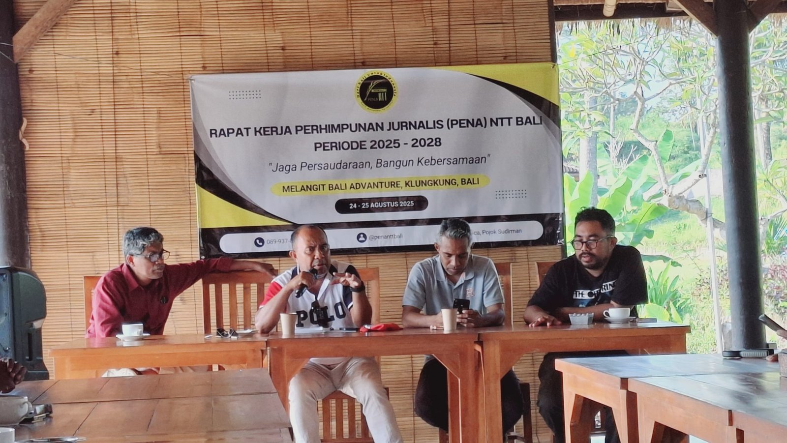 Barometer Bali | Klungkung – Perhimpunan Jurnalis (PENA) NTT Bali mengadakan Rapat Kerja (Raker) di Melangit Bali Adventure, Klungkung selama dua hari, 23-24 Agustus 2025. Raker tersebut di ikuti oleh 30 orang anggota dan mengusung tema “Jaga Persaudaraan, Bangun Kebersamaan.”