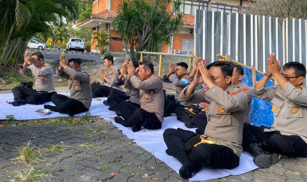 Seizin Kapolres Kawasan bandara I Gusti Ngurah Rai AKBP Ida Ayu Wikarniti, Kabag SDM AKP I Nyoman Arnaya, mengatakan kegiatan persembahyangan ini bertujuan memohon keselamatan dalam bertugas.