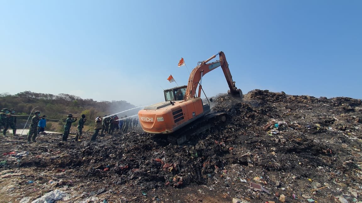 “Jadi sampahnya kita keruk untuk mengurai gas metan, selanjutnya kita semprot untuk memadamkan jika ada bara api, itu sangat efektif,” ujarnya