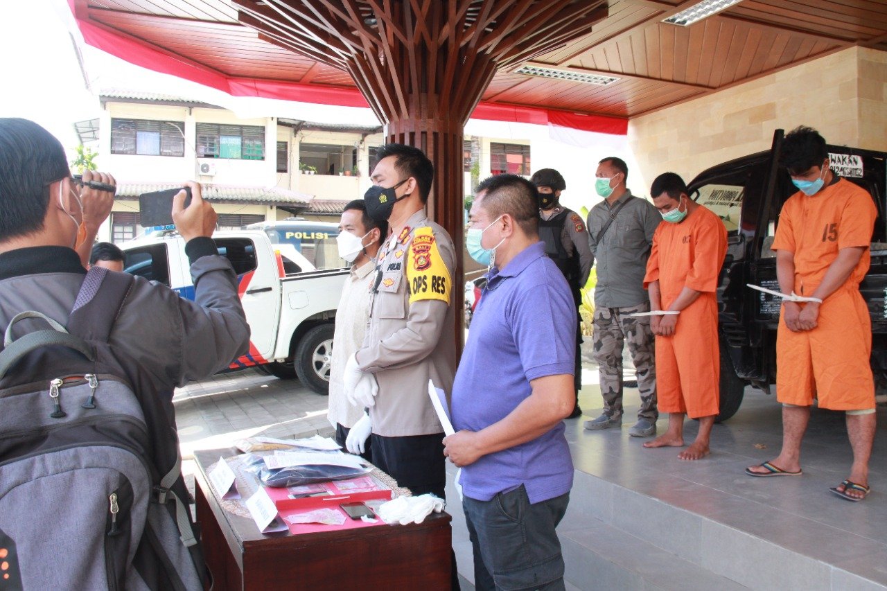 Caption: Kapolres Klungkung AKBP I Made Dhanuardana, S.I.K., M.H., merilis penangkapan terduga pelaku pencurian emas, Kamis (15/7/2021).