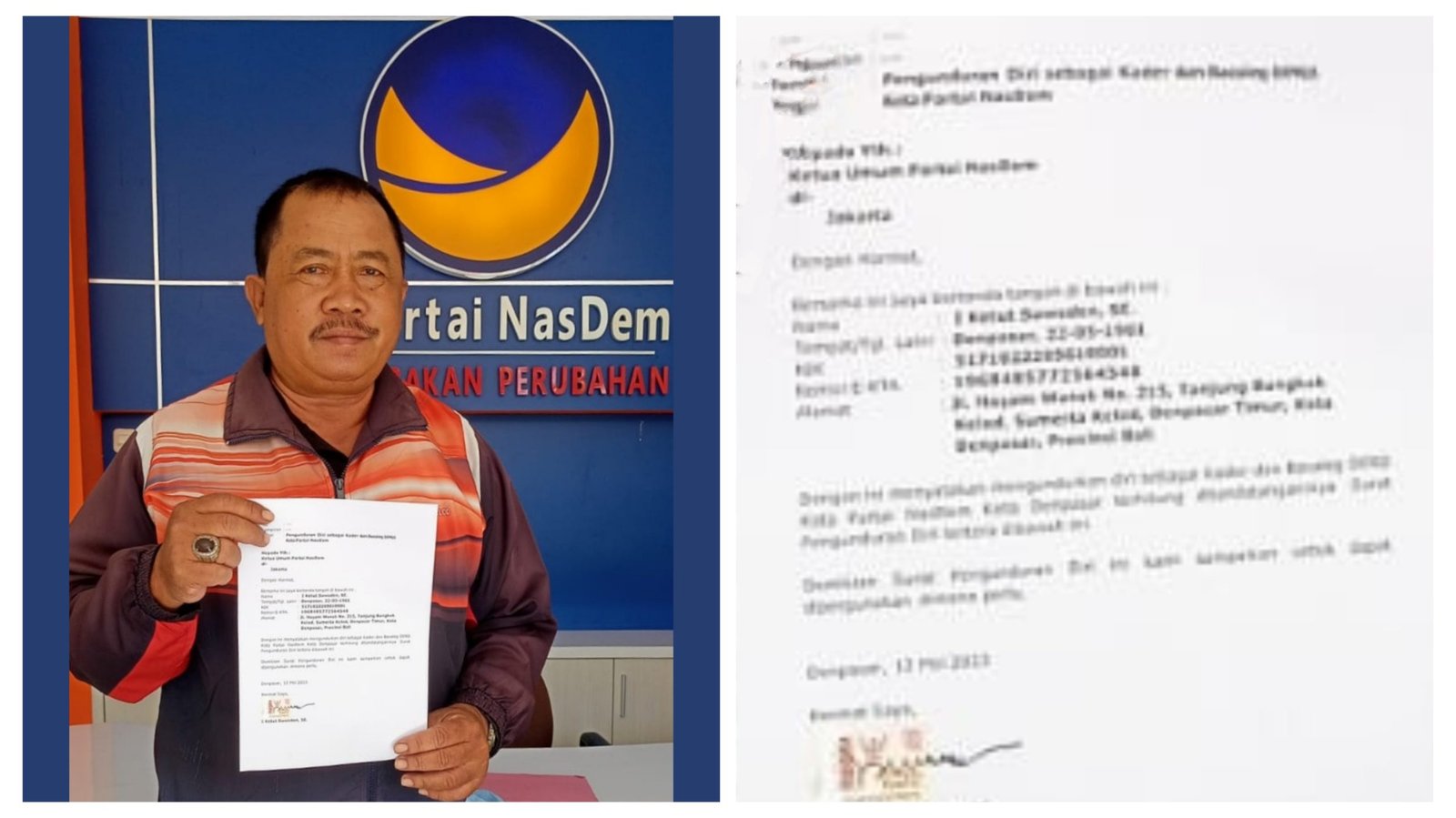 “Saya putuskan untuk mundur dari NasDem, dan surat pengunduran diri secara resmi telah saya serahkan hari ini,” ungkapnya saat dikonfirmasi media.