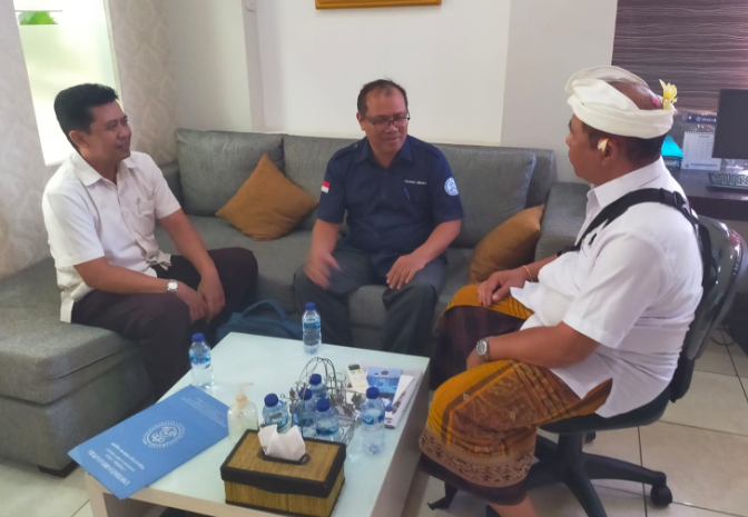 Ket foto: Peneliti Dr. Ruspendi bersama Ketua LPD, I Wayan Budiasa dan staf di kantor LPD Desa Adat Legian, Kuta (barometerbali/undhira)