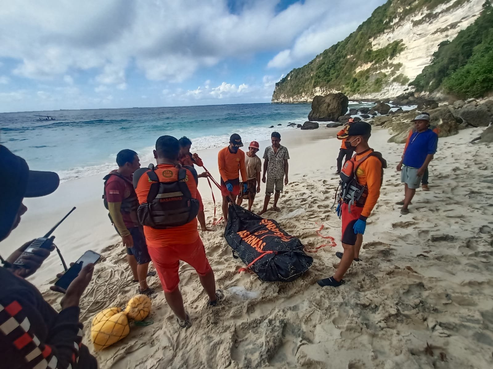 “Saksi melihat dari atas tebing ke arah pantai ada jenazah kurang lebih jam 5 sore,” ungkap Gede Darmada, S.E., M.A.P. , Kepala Kantor Basarnas Bali.