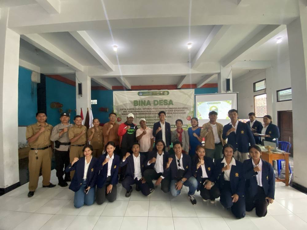 Cipta Karya Guna: Optimalisasi Produk Unggulan Desa Melalui Pemberdayaan Masyarakat dan Strategi Marketing Olahan Buah Stroberi di Desa Pancasari merupakan judul yang diangkat oleh Tim Bina Desa BEM FP Unud. Melalui judul ini besar harapan Tim Bina Desa BEM FP Unud untuk dapat mengoptimalkan produk unggulan desa yaitu buah stroberi dengan memberdayakan seluruh komponen masyarakat agar dapat menghasilkan produk unggul dan strategi marketing sehingga terciptanya desa wirausaha.