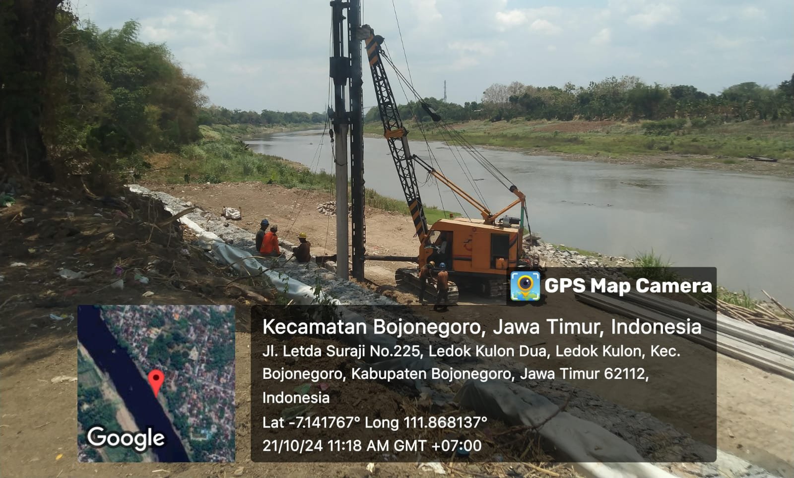 Ket foto: Proyek pembangunan pelindung tebing Sungai di Kelurahan Ledok Kulon, Kecamatan Bojonegoro. (barometerbali/redho)