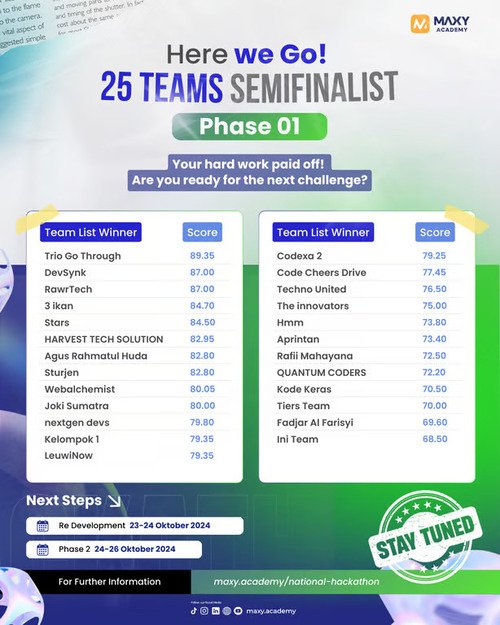 Untuk informasi lebih lanjut, silahkan kunjungi National Impact Hackathon dan Instagram @maxy.academy.
