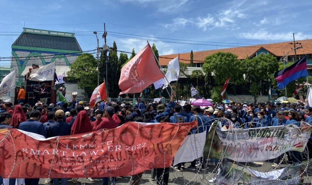 Penuh Kecaman, Ribuan Mahasiswa  Surabaya dan Buruh Aksi Turun ke Jalan