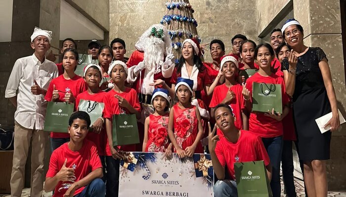 Acara dimulai dengan penyalaan pohon Natal yang megah, melambangkan harapan dan persatuan di musim perayaan ini. Swarga Suites mengundang anak-anak dari Panti Asuhan Bina Ekklesia untuk berbagi kebahagiaan Natal dan menciptakan kenangan tak terlupakan bersama. Santa Claus dan Santarina juga hadir untuk membagikan hadiah, menyebarkan keceriaan bagi anak-anak dan tamu yang hadir.