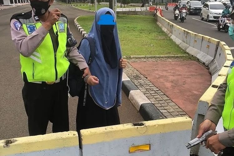 Jakarta | barometerbali – Aparat kepolisian dibantu Pasukan Pengamanan Presiden (Paspampres) menangkap seorang perempuan bercadar karena hendak menerobos di pintu masuk Istana Negara, Jalan Medan Merdeka Utara, Jakarta Pusat pada Selasa (25/10/2022) sekitar pukul 07.00 WIB.
