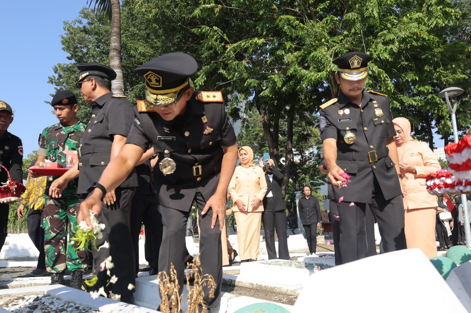 Ket foto: Kakanwil Kememkumham Jatim Heni Yuwono memimpin jajarannya melaksanakan ziarah rombongan ke Taman Makam Pahlawan Sepuluh Nopember Surabaya, Jumat (9/8). (Sumber: barometerbali/Redho)