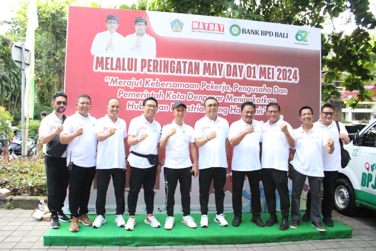 Kemeriahan agenda May Day dihadiri Walikota Denpasar, I Gusti Ngurah Jaya Negara, Wakil Walikota, I Kadek Agus Arya Wibawa, Ketua DPRD, I Gusti Ngurah Gede, Forkopimda Denpasar, dan seluruh pimpinan OPD Pemkot Denpasar. Dalam kegiatan tersebut, Walikota Jaya Negara bersama seluruh undangan mengikuti senam bersama dan diakhiri dengan pengundian doorprize.