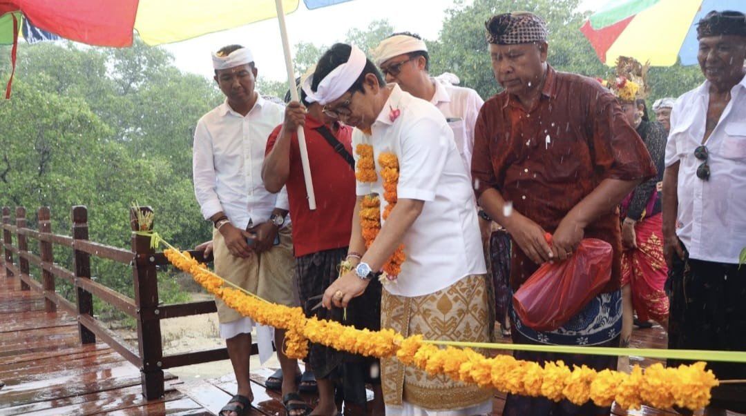 Foto: Bupati Wayan Adi Arnawa menghadiri upacara melaspas sekaligus meresmikan Jembatan Suwung Lemo di Kelurahan Tanjung Benoa, Kecamatan Kuta Selatan, Badung, Sabtu (3/1/2026). (red/rah)