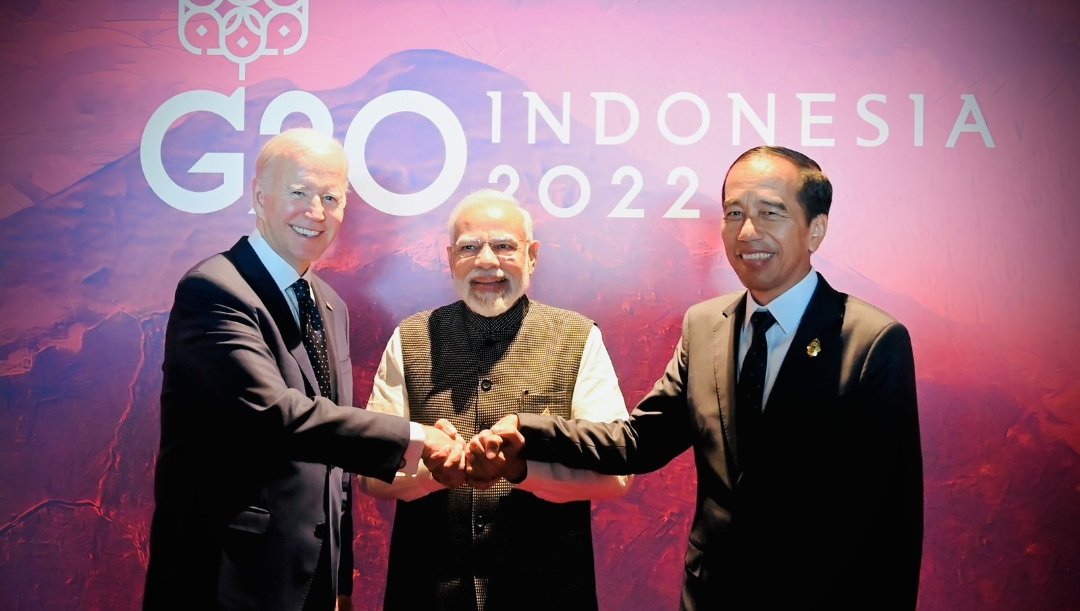 Foto: Presiden Jokowi (kanan), Presiden AS Joe Biden (kiri) dan PM India Narendra Modi (tengah) sepakati beberapa perjanjian kerja sama di KTT G20. (BPMI Setpres)