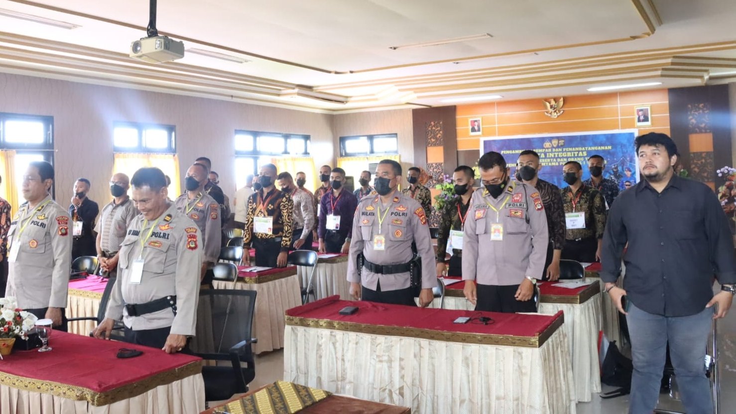 Gianyar | barometerbali – Polres Gianyar mengikuti pelaksanaan zoom meeting acara Pengambilan Sumpah dan Penandatanganan Pakta Integritas Panitia, Peserta dan Orangtua Penerimaan Tamtama Polri gelombang I tahun anggaran 2023 dipimpin Karo SDM Polda Bali Kombes Pol Tri Bisono Soemiharso di Aula Tri Brata, Polres Gianyar, Kamis (22/9/22)