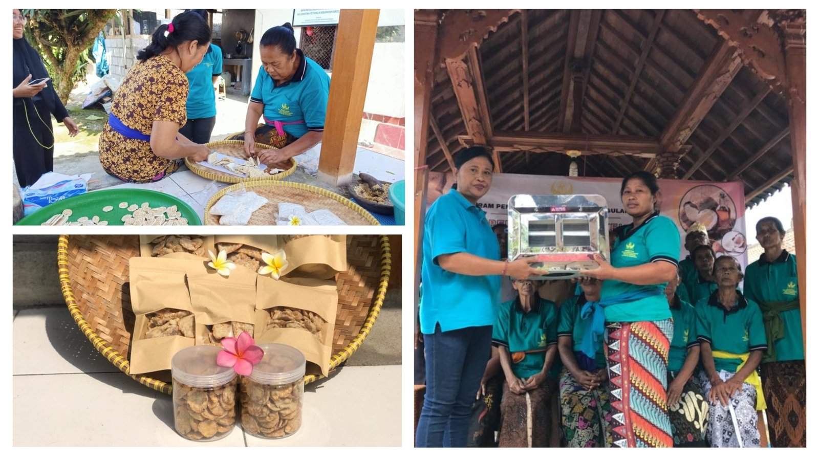 Kolase: Kegiatan sosialisasi dan pelatihan serangkaian “Program Pengembangan Produk Unggulan Daerah” Fakultas Pertanian Unwar di Desa Carangsari, Badung pada Kamis (18/5/2023). (BB/FP/Unwar)