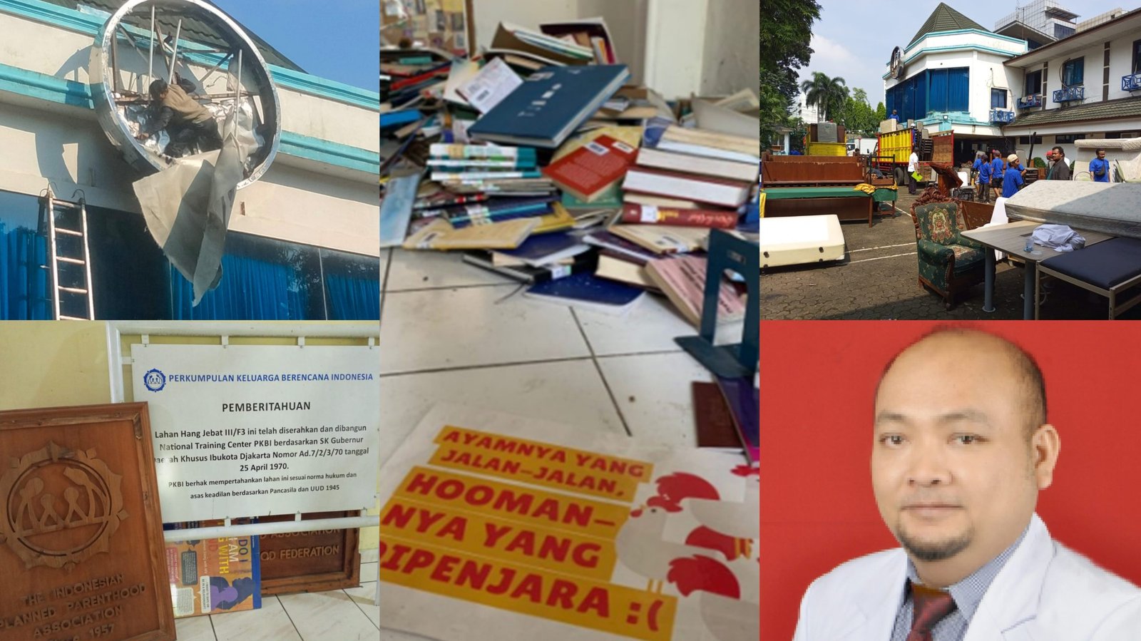Kolase foto: Ketua Pengurus PKBI Daerah Bali dr Oka Negara menyayangkan tindakan penggusuran sepihak yang tidak manusiawi terhadap PKBI Nasional oleh Satpol PP Jakarta yang di-backup belasan aparat kepolisian dan TNI. (Sumber: barometerbali.com/pkbibali)
