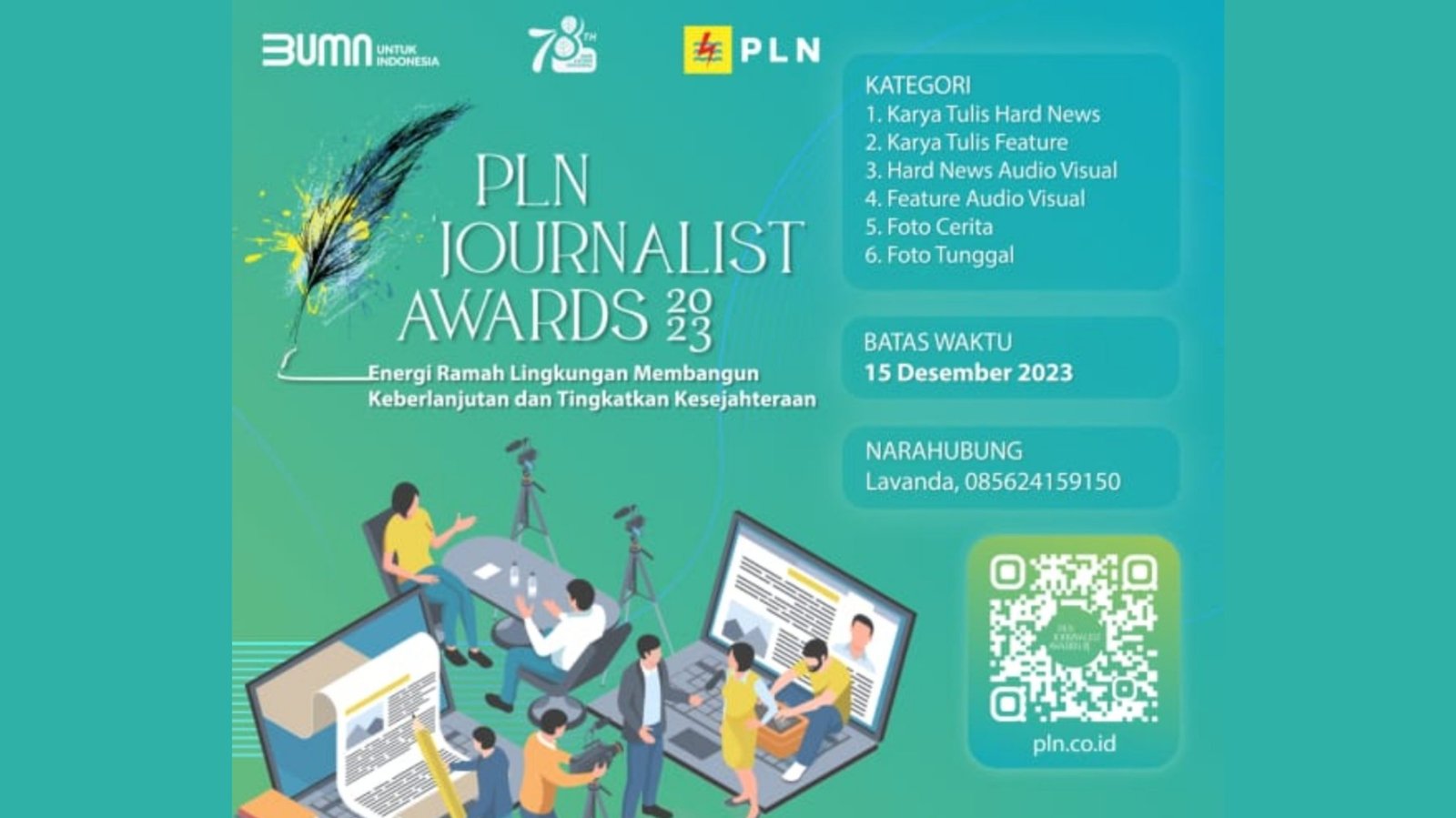Lebih lanjut terkait informasi PLN Journalist Award 2023, dapat mengakses tautan berikut: https://web.pln.co.id/pln-journalist-award-2023. (213)