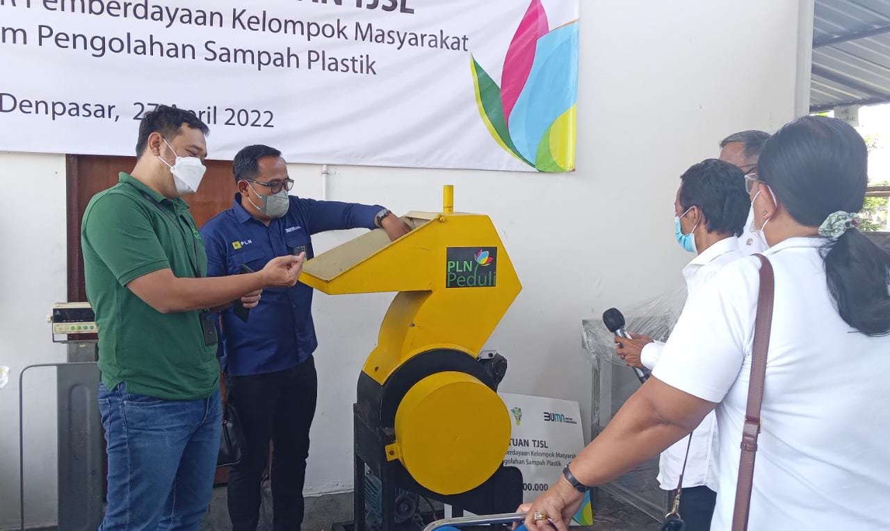 Denpasar | barometerbali – PT PLN (Persero) Unit Induk Distribusi Bali kembali menyalurkan bantuan melalui program tanggung jawab sosial dan lingkungan (TJSL), PLN Peduli berupa unit mesin pencacah sampah plastik dan mesin pembuat pelet sampah organik kepada masyarakat Kelompok Swadaya Masyarakat (KSM) Sekar Tanjung di Desa Sanur Kauh sebesar 90 juta rupiah di Denpasar Rabu, (27/4/2022).