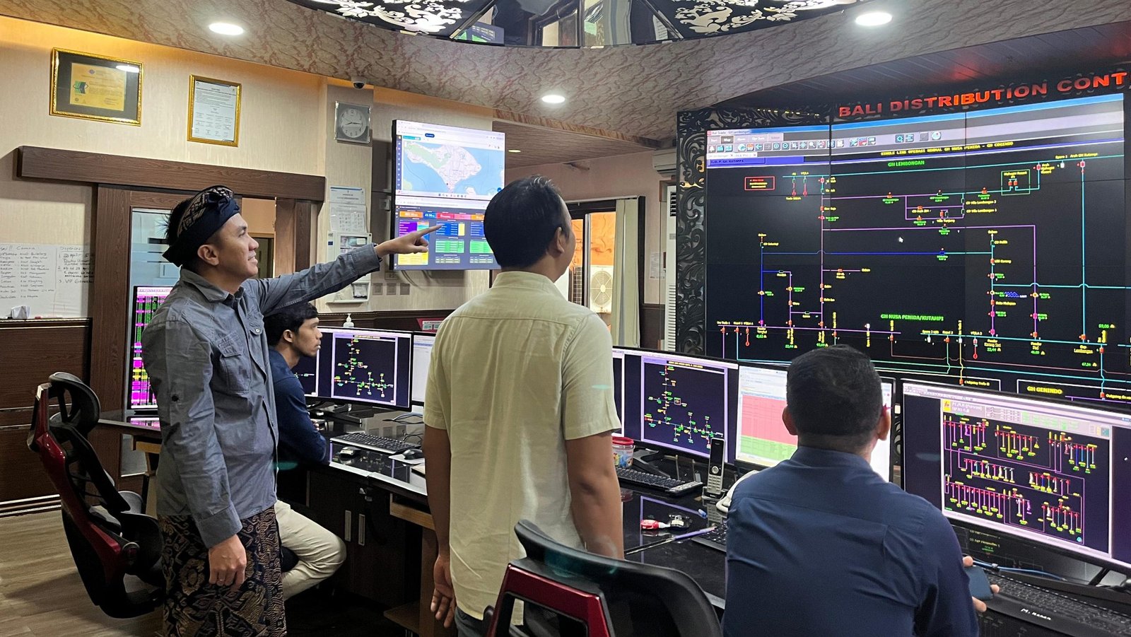 Foto: Monitoring sistem kelistrikan saat Nyepi dan Idul Fitri dari Ruang Distribution Control Center (DCC) UP2D Bali, oleh petugas Dispatcher. (pln/rah)