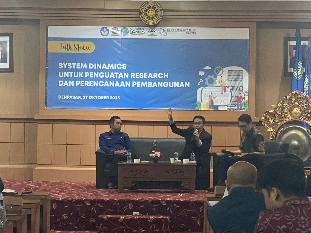 Foto: Talkshow dengan topik Sistem Dinamics Untuk Penguatan Research dan Perencanaan Pembangunan di Gedung Pasca Sarjana Unud. (BB/HMS)