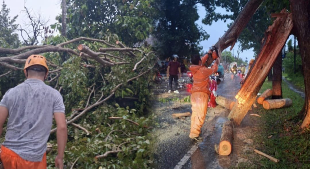 Pohon Besar Tumbang di Tegalcangkring, Timpa Kendaraan dan Tutup Jalan