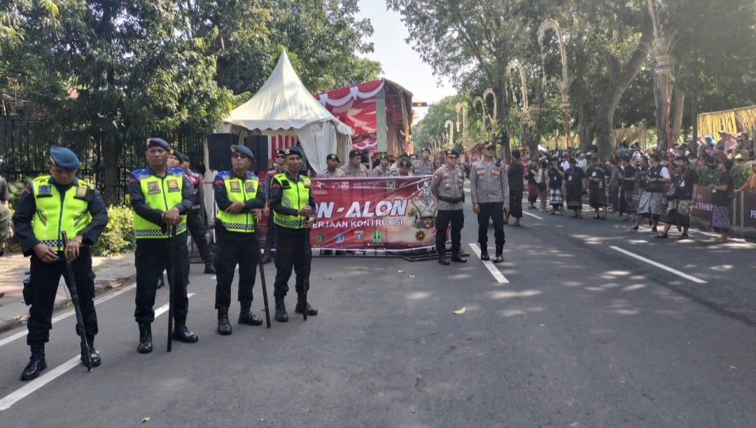 Barometer Bali | Denpasar – Personil gabungan Polda Bali, Polresta Denpasar dan Polres Bandara Ngurah Rai yang tergabung dalam Satgas Ops Gapura Agung, amankan dengan ketat pembukaan Pesta Kesenian Bali (PKB) XLVII Tahun 2025, di Jl. Niti Mandala Renon Denpasar, Sabtu (21/6/2025).