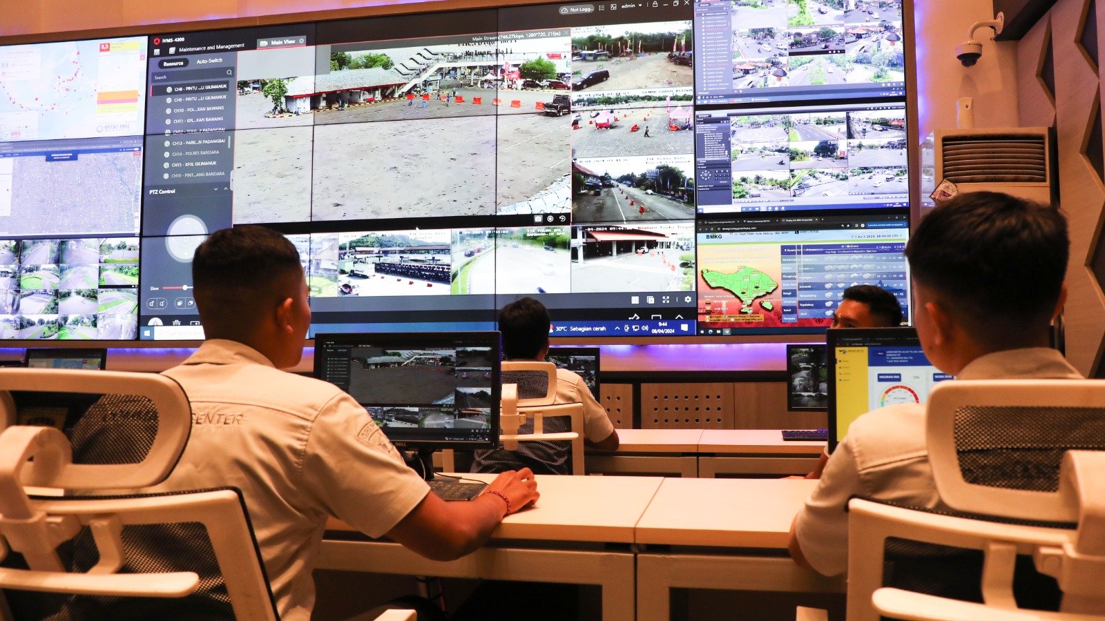 Foto: Polda Bali memantau situasi arus lalu lintas melalui CCTV Command Center Polda Bali. (Sumber: BB 215/ Polda).