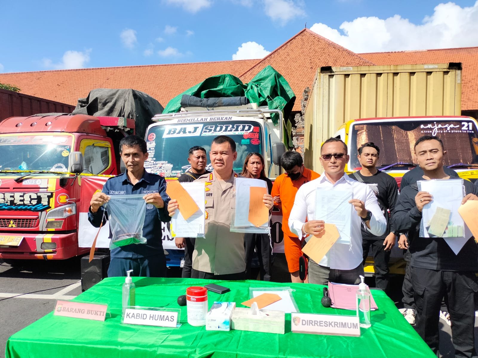 “Gerak cepat Tim Resmob Polda Bali berhasil mengungkap kasus curat tersebut dan menangkap para pelakunya pada Kamis 1 Juni 2023 (sehari pascakejadian), lengkap beserta barang buktinya yaitu 6 unit mobil truk,” beber Satake didampingi Kasubid Penmas AKBP Ketut Eka Jaya, dan PJS. Kasubdit 3 Ditreskrimum Kompol Adi Guna.