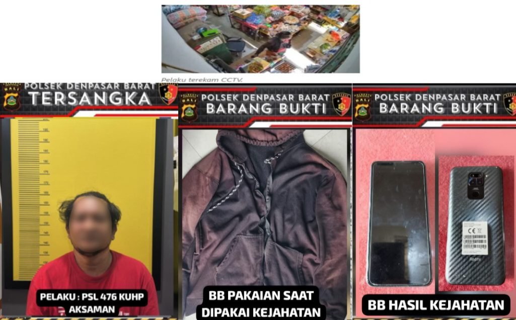 Barometer Bali | Denpasar — Unit Reskrim Polsek Denpasar Barat berhasil mengamankan seorang pelaku pencurian handphone yang terjadi di sebuah toko kelontong UD Adi Putra, Jalan Gunung Andakasa No. 7, Padang Sari, Kelurahan Padangsambian, Denpasar Barat. Peristiwa pencurian tersebut terjadi pada Sabtu, 7 Februari 2026 sekitar pukul 09.00 Wita.