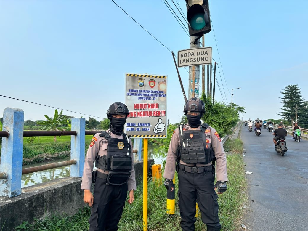 Tampak anggota Sat Samapta Polresta Sidoarjo bersama Polsek Sukodono dan Polsek Buduran, Rabu (10/7/2024), memasang banner imbauan bagi para pengendara.