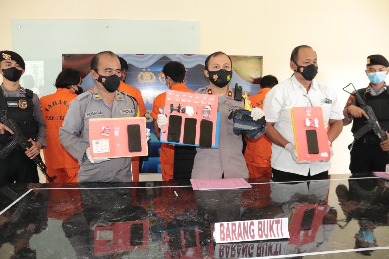 Wakapolres Tabanan melanjutkan keberhasilan pengungkapan berawal dari berkat ketekunan dan kerja keras Tim Opsnal Res Narkoba, akhirnya tim berhasil mengamankan 5 (lima) orang terduga di tempat dan pada waktu yang berbeda, juga berhasil menyita berbagai barang bukti yang ada kaitannya dengan peran masing-masing pelaku,” ucap Wakapolres Tabanan.