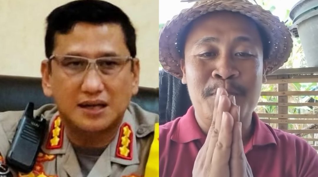 Kolase foto: Kabid Humas Polda Bali, Kombes Pol Jansen Panjaitan (kiri) dan Wayan Setiawan menyampaikan permohonan maaf (kanan), Kamis, (6/6/2024). (Sumber: BB/Rian)
