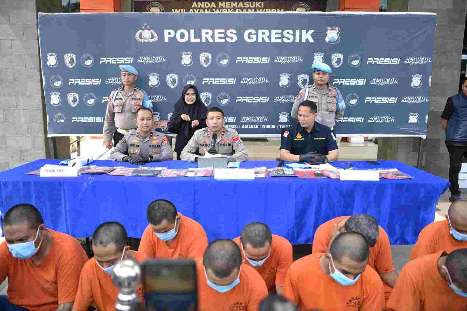 Press conference hasil ungkap kasus ini dipimpin langsung Wakapolres Gresik Kompol Danu Anindhito Kuncoro, didampingi Kasat Resnarkoba Polres Gresik AKP Ahmad Yani, dan Kasi Humas Polres Gresik Ipda Hepi Muslih Riza, Selasa (16/9/2025).