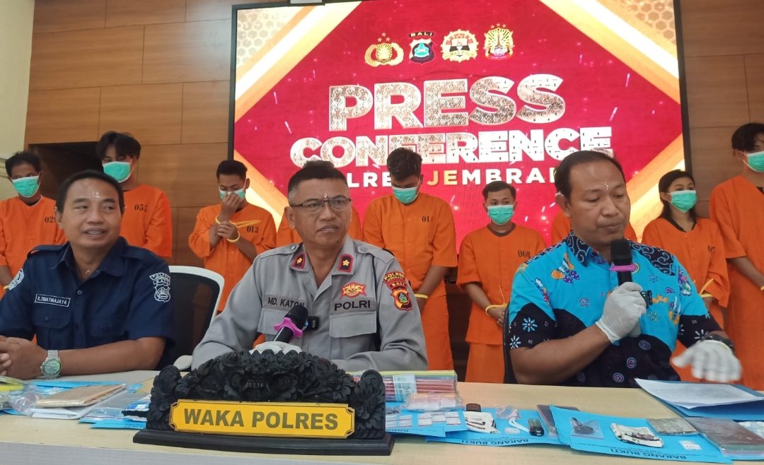 Kesembilan tersangka dihadirkan dalam konferensi pers yang dilaksanakan di aula Mapolres Jembrana, Kamis (20/6/2024). Waka Polres Jembrana, Kompol I Made Katon, membeberkan kronologi penangkapan para pelaku penyalahgunaan narkotika selama pelaksanaan Operasi Antik Agung 2024.