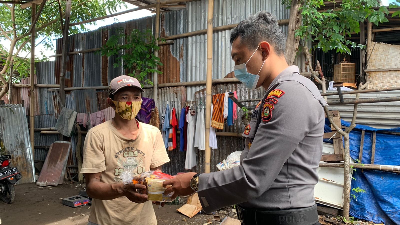 Personel Polres Klungkung menyerahkan bansos, ‘Polri Peduli Dampak Covid-19’ di wilayah Kabupaten Klungkung, dengan cara mendatangi warga satu per satu ke rumahnya untuk mengurangi kerumunan Senin, (13/09/2021) pagi.