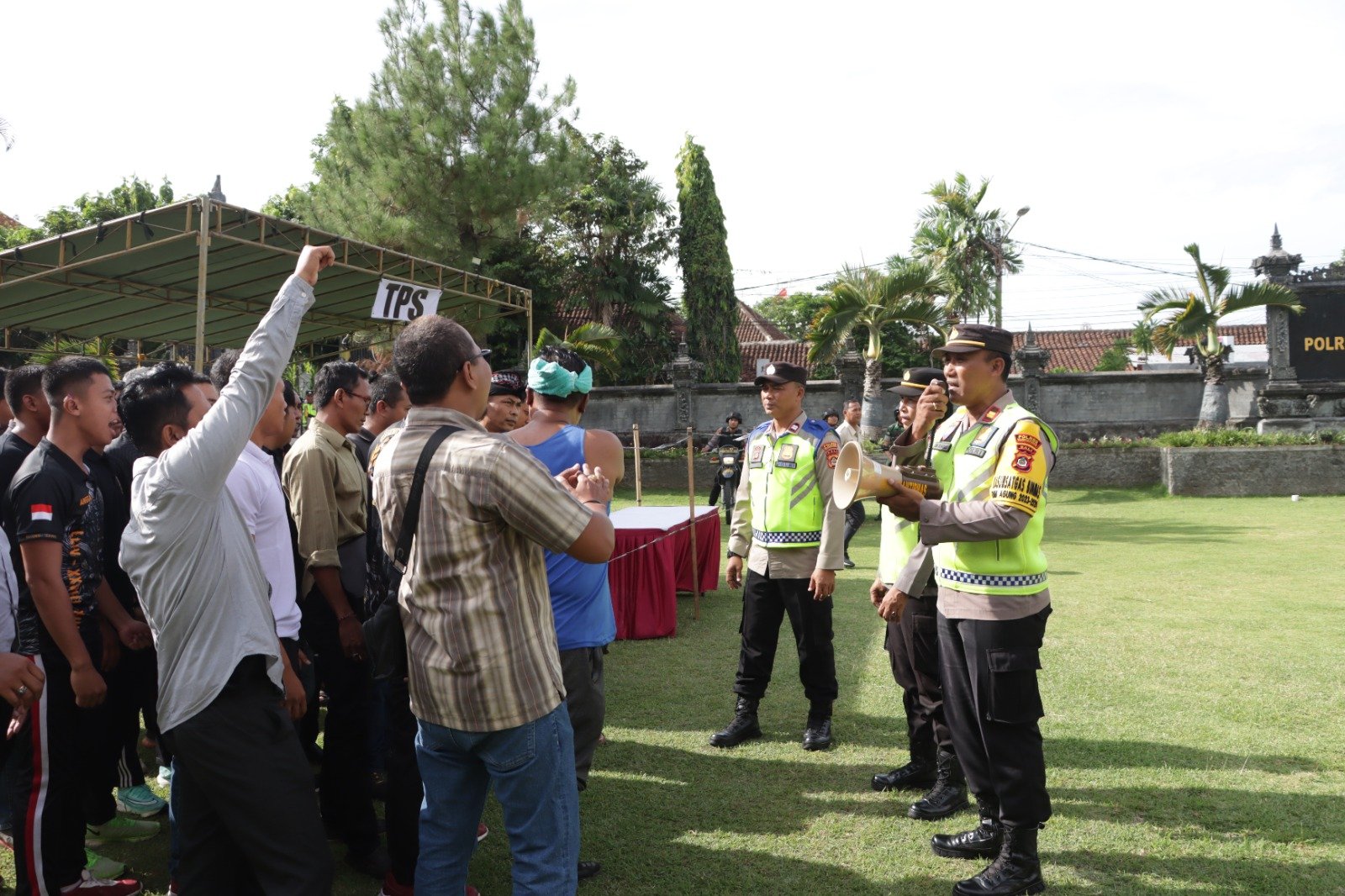 Kegiatan dipimpin langsung Kapolres Klungkung AKBP Umar,S.I.K.,M.H., dihadiri Wakapolres Klungkung Kompol I Komang Sura Maryantika, Para PJU dan Kapolsek jajaran Polres Klungkung serta personel Polres Klungkung yang terlibat dalam pengamanan TPS Pemilu 2024.