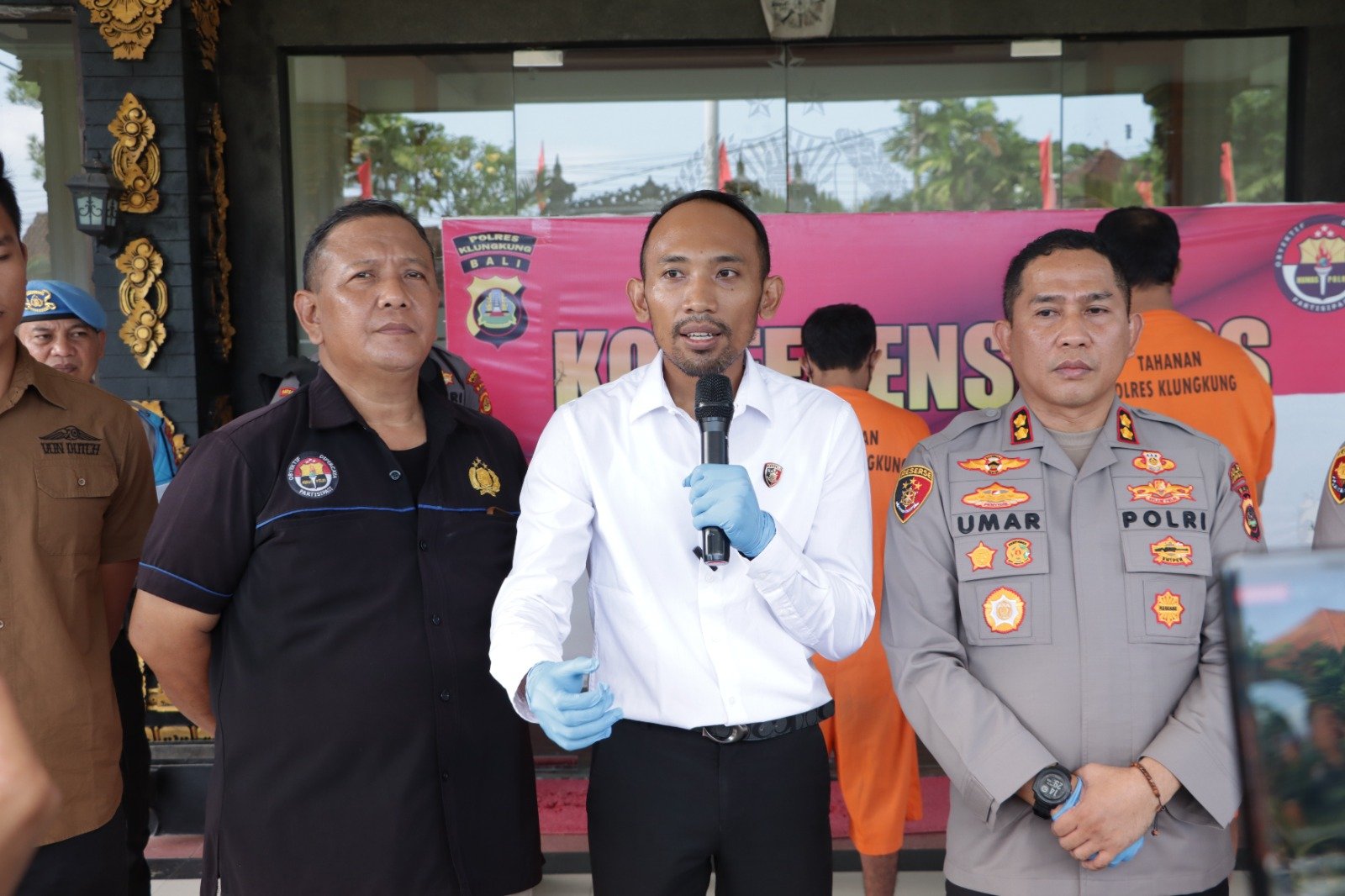 Di hadapan awak media, Kapolres menuturkan bahwa Sat Reskrim Polres Klungkung melakukan serangkaian kegiatan penyelidikan berkaitan informasi dari masyarakat dengan banyaknya kendaraan yang masuk ke Pulau Nusa Penida diduga banyak yang tidak dilengkapi dengan surat atau dokumen kendaraan yang sah atau identitas tidak resmi.