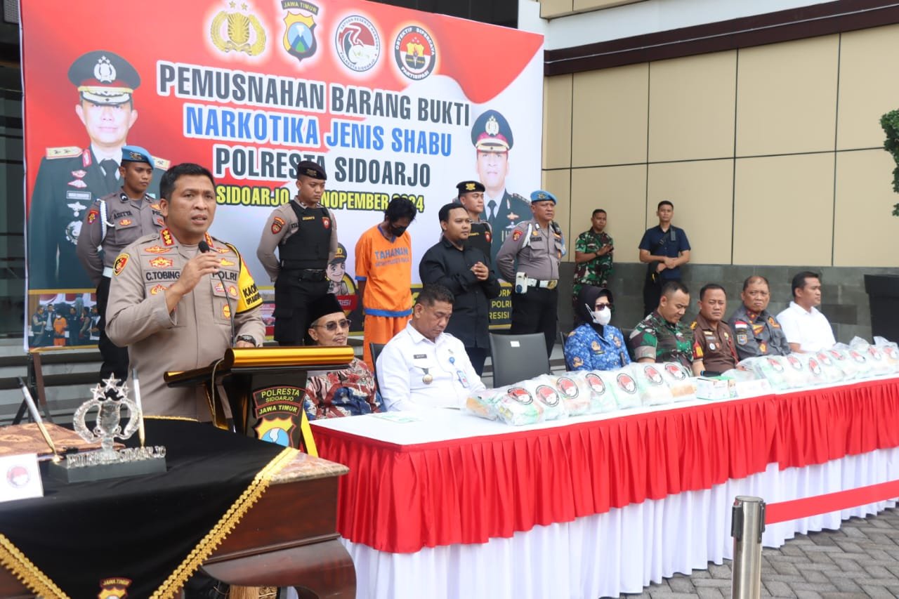 Pemusnahan barang bukti tersebut dilakukan Kapolresta Sidoarjo, Dandim 0816 Sidoarjo, Sekda Kabupaten Sidoarjo mewakili Pjs. Bupati Sidoarjo, Kajari Sidoarjo, Kepala BNNK Sidoarjo, Kasatpol PP dan Ketua MUI Sidoarjo. Sabu 30 kilogram dimasukkan ke dalam insinerator atau tungku pembakaran khusus milik BNNP Jatim.