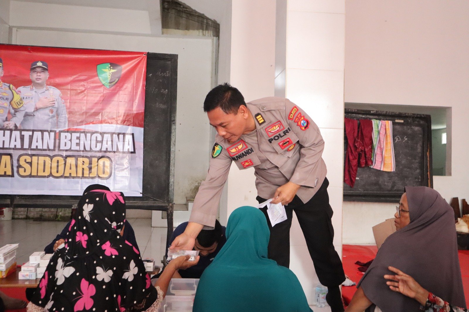 “Adanya pemeriksaan kesehatan dan pengobatan gratis dari Polresta Sidoarjo, sejumlah keluhan kesehatan warga dapat di cek langsung oleh tim medis. Harapannya warga kami selalu sehat di tengah dampak banjir yang melanda saat ini,” ungkapnya.