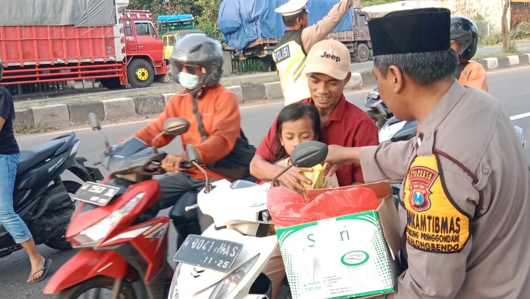 Foto: Polsek Balongbendo melalui pembagian takjil kepada warga sekitar mako polsek dan pengendara, Rabu (5/3/2025). (barometerbali/redho)