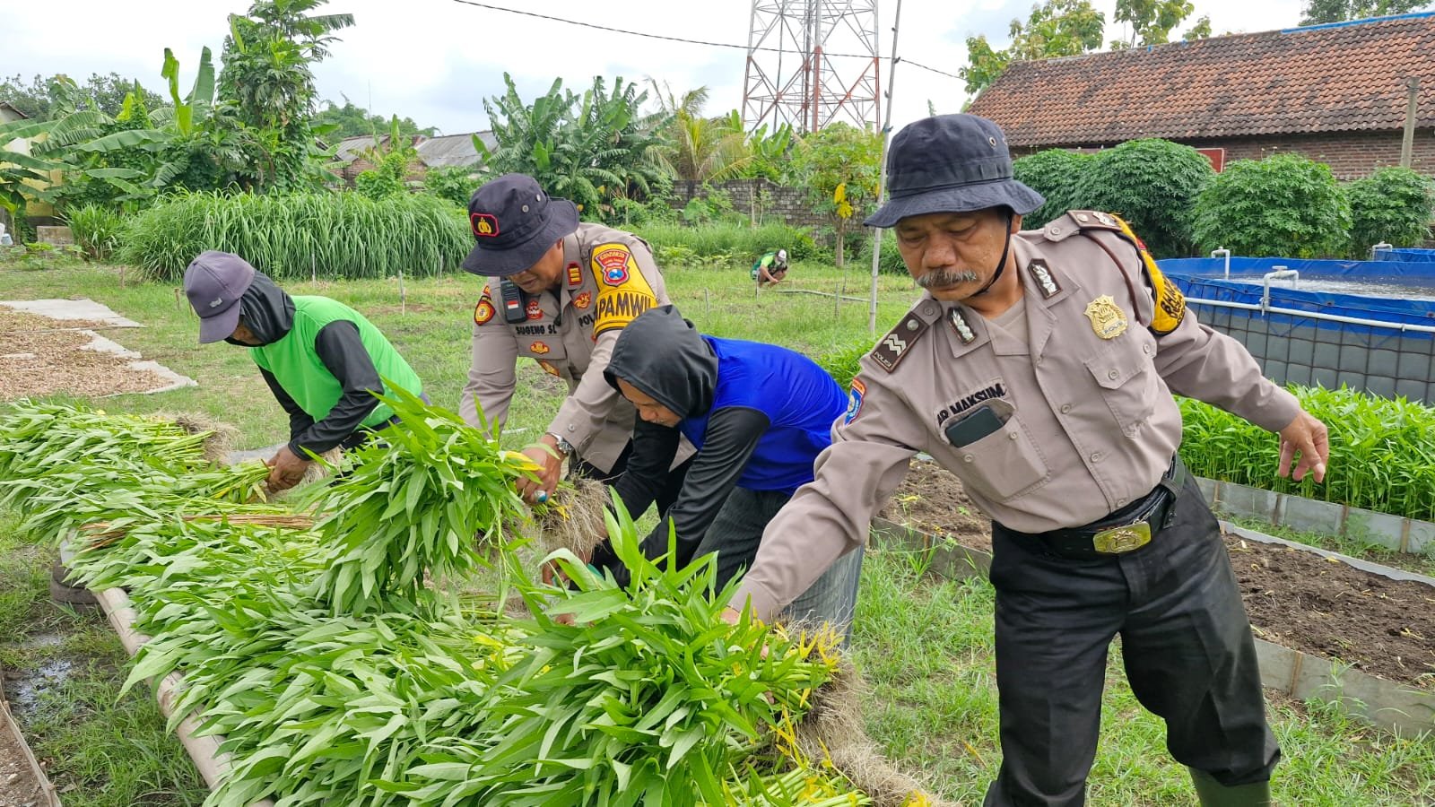 Polsek Balongbendo bersama Warga Bakungtemenggungan Panen Kangkung di Pekarangan Bergizi