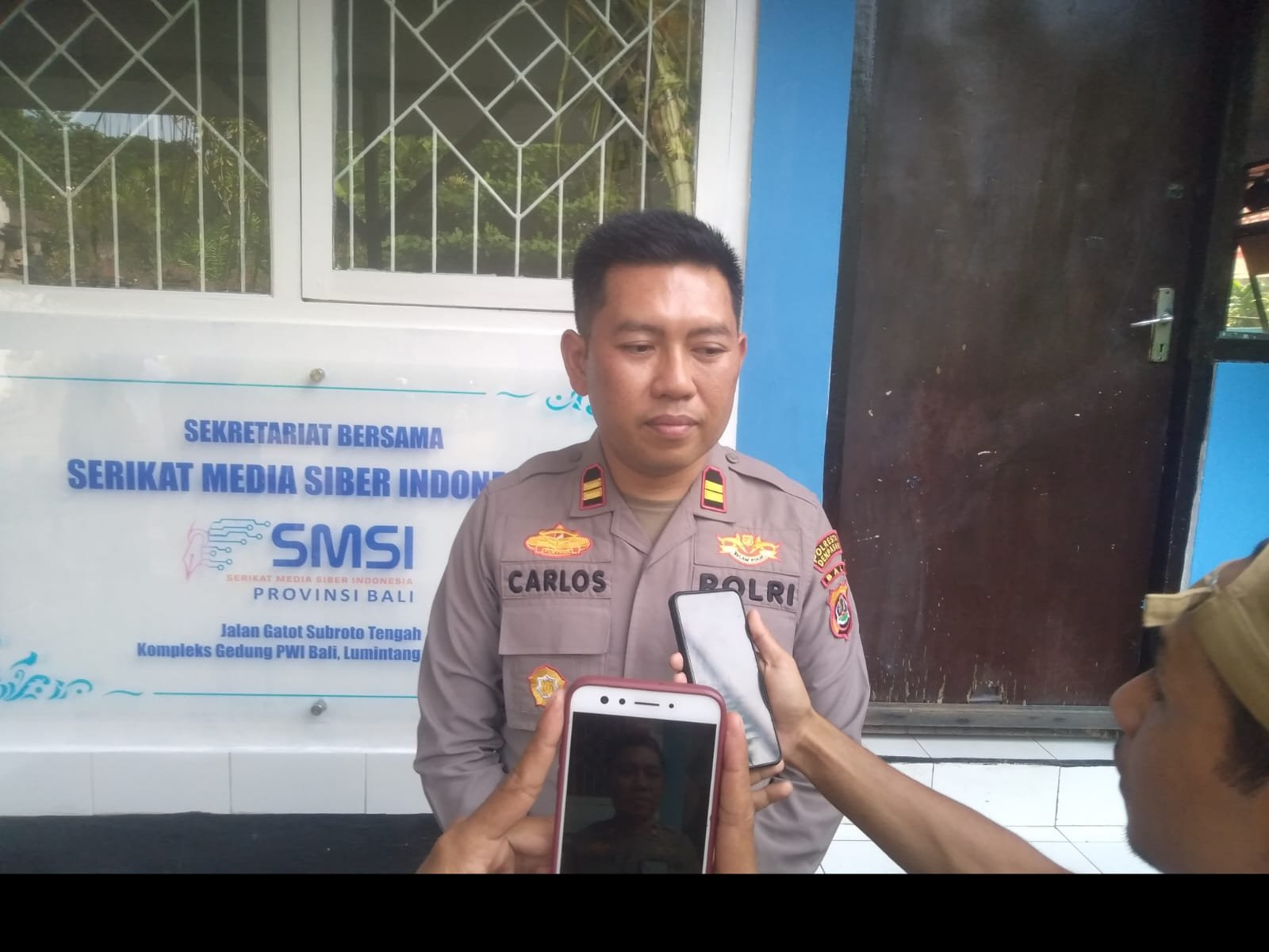 Foto: Kapolsek Denpasar, Iptu Carlos Dolesgit saat diwawancara di kantor Sekretariat Bersama SMSI Bali, Lumintang, Denpasar, Rabu (22/5/2024). (Sumber: BB/Rian).