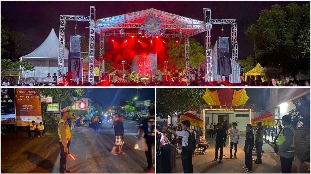 Foto: Pengamanan kegiatan DELUSI (Degung Melagu Anak Musik) #6 ITB Stikom Bali di Lapangan Yayasan Pembangunan Sanur (YPS) Kelurahan Sanur Denpasar Selatan, Sabtu (3/12/2022) malam.