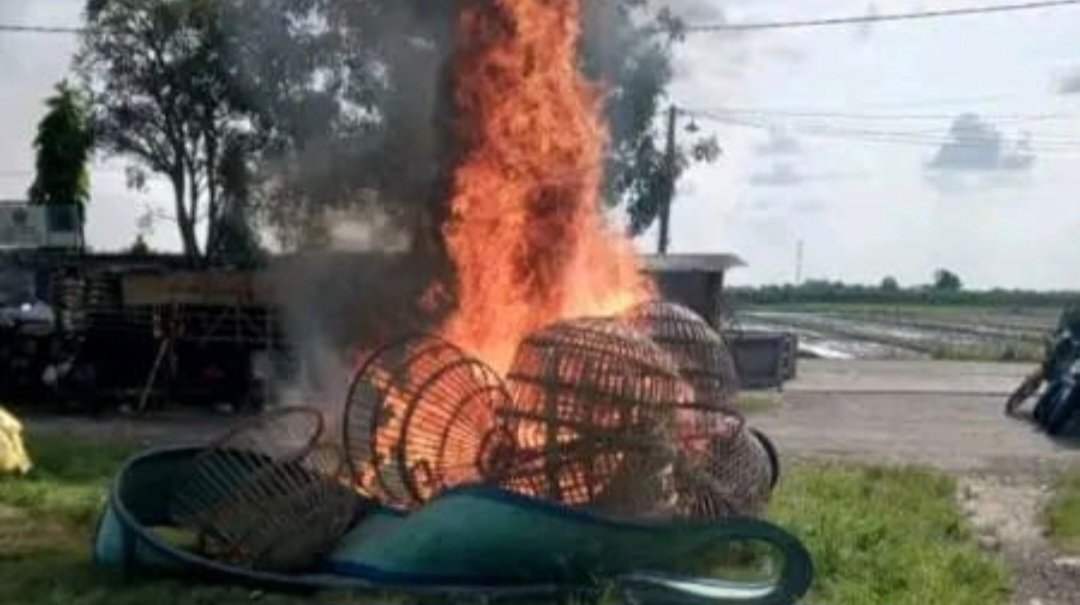 Barometer Bali | Sidoarjo – Aparat Polsek Krian, Polresta Sidoarjo, menggerebek arena sabung ayam yang berada di area Tempat Pembuangan Sampah (TPS) Dusun Ngaglik, Desa Sedenganmijen, Kecamatan Krian, Kabupaten Sidoarjo, pada Sabtu (17/5/2024) siang.