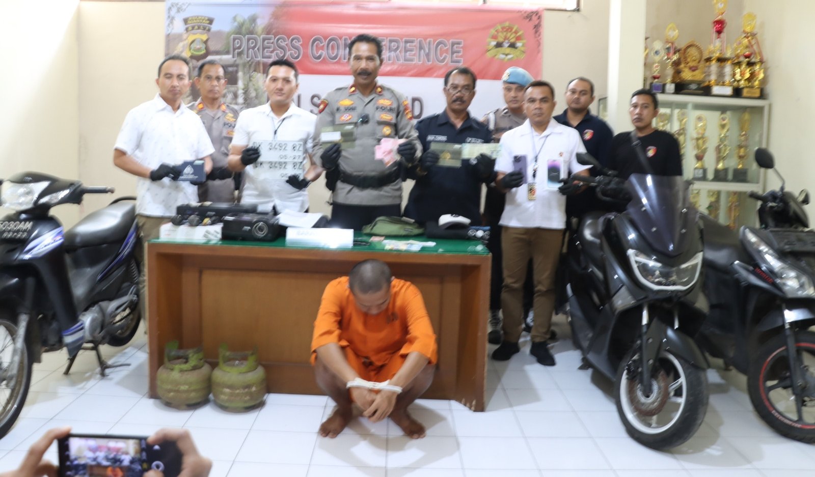 Foto: Selain terlibat kasus penggelapan, dan pencurian sepeda motor di Ubud, Hermansyah juga terlibat kasus pencurian mobil dinas polisi di Pospol Tohpati saat konferensi pers di Mapolsek Ubud, Gianyar. (BB/Hms Polres Gianyar)