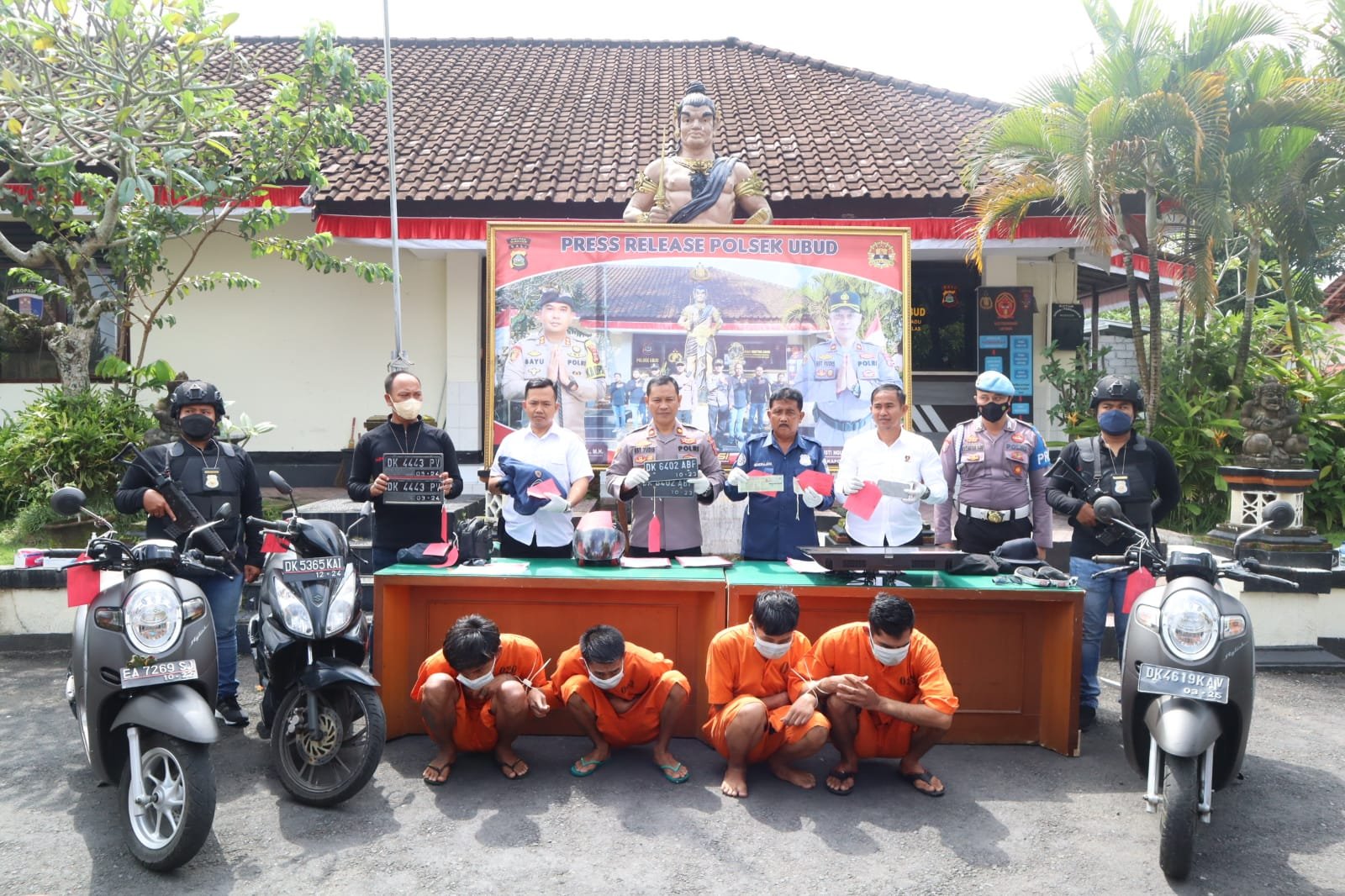 Kapolsek Ubud Kompol I Gusti Ngurah Yudistira, didampingi Kanit Reskrim Polsek Ubud Iptu Ngakan Ketut Erawan, serta Kasi Humas Polres Gianyar AKP I Nyoman Hendrajaya mengatakan bahwa dalam press release ini petugas menghadirkan tersangka sebanyak 4 orang, dari 4 laporan kasus tindak pidana.
